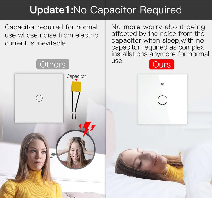• Kein Kondensator für die Version ohne Neutralleiter: Bei der Version ohne Neutralleiter ist kein Kondensator erforderlich, was ein ruhigeres und zuverlässigeres Benutzererlebnis ermöglicht.