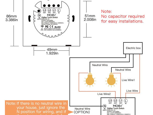 ZigBee 2-Wege-Lichtschalter, Touch-Multi-Control-Schalter, Neutralleiter optional, kein Kondensator EU