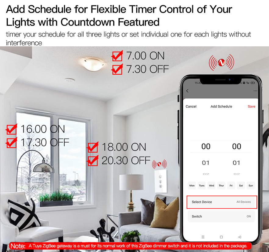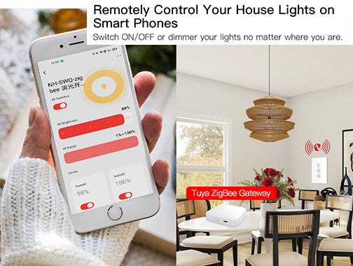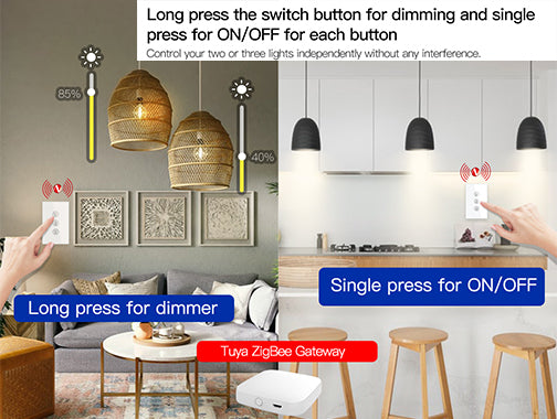 • Tuya MOES ZigBee-Gateway erforderlich: Um die drahtlose Fernsteuerung des intelligenten Dimmerschalters zu ermöglichen, ist ein Tuya MOES ZigBee-Gateway erforderlich.