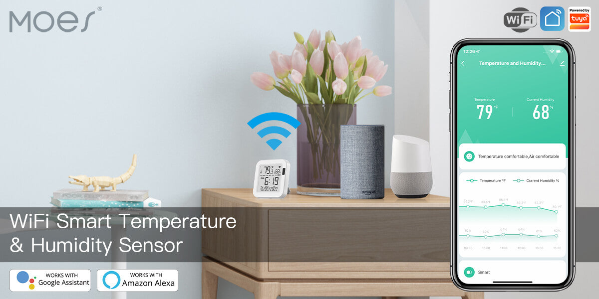 • Arbeiten Sie mit Alexa und Google Home: Für diese Version des Smart Sensors ist eine Sprachsteuerung verfügbar, um den aktuellen Temperatur- und Luftfeuchtigkeitsstatus per Sprachbefehl zu erfahren; Teilen Sie das Gerät bequem mit der Familie; schnelles Pairing mit Bluetooth bei weniger als 2,4 G WLAN.
