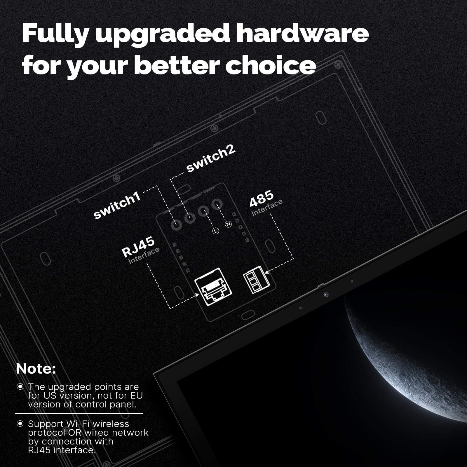 Ofrecemos opciones de hardware completamente actualizadas para su comodidad. Nuestro panel de control ha sido rigurosamente probado y mejorado para garantizar un rendimiento óptimo. Es compatible con el protocolo inalámbrico Wi-Fi y con una red cableada a través de la interfaz RJ45 para ofrecer opciones de conectividad versátiles.
