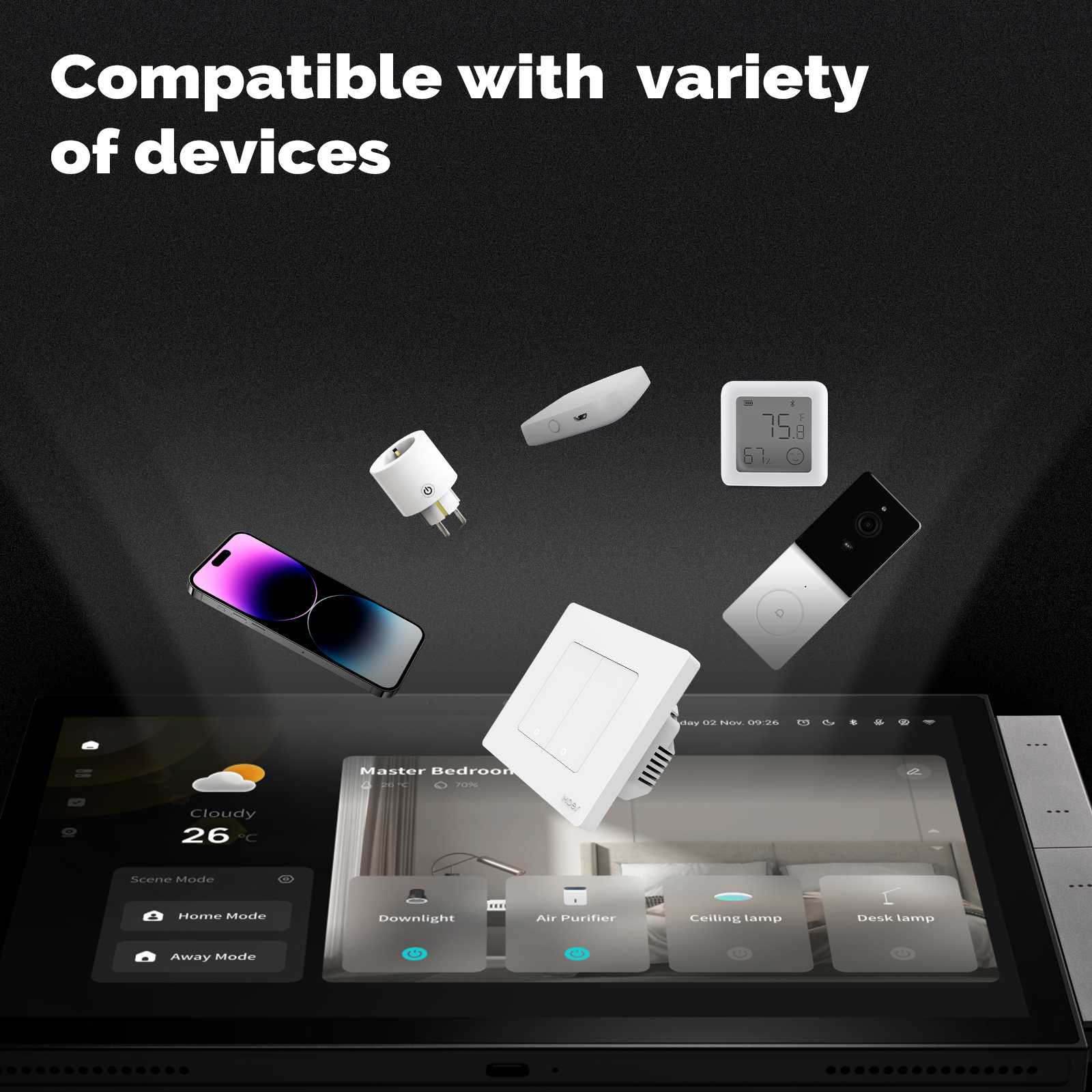 • Panel de control inteligente Bluetooth timTuya Max: una puerta de enlace multimodo para dispositivos Tuya, que integra y controla varios dispositivos inteligentes en su hogar.