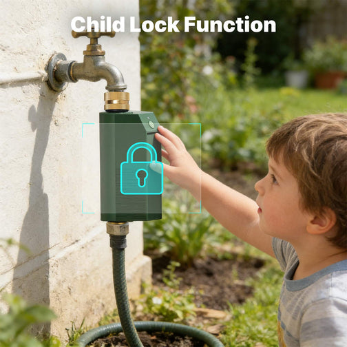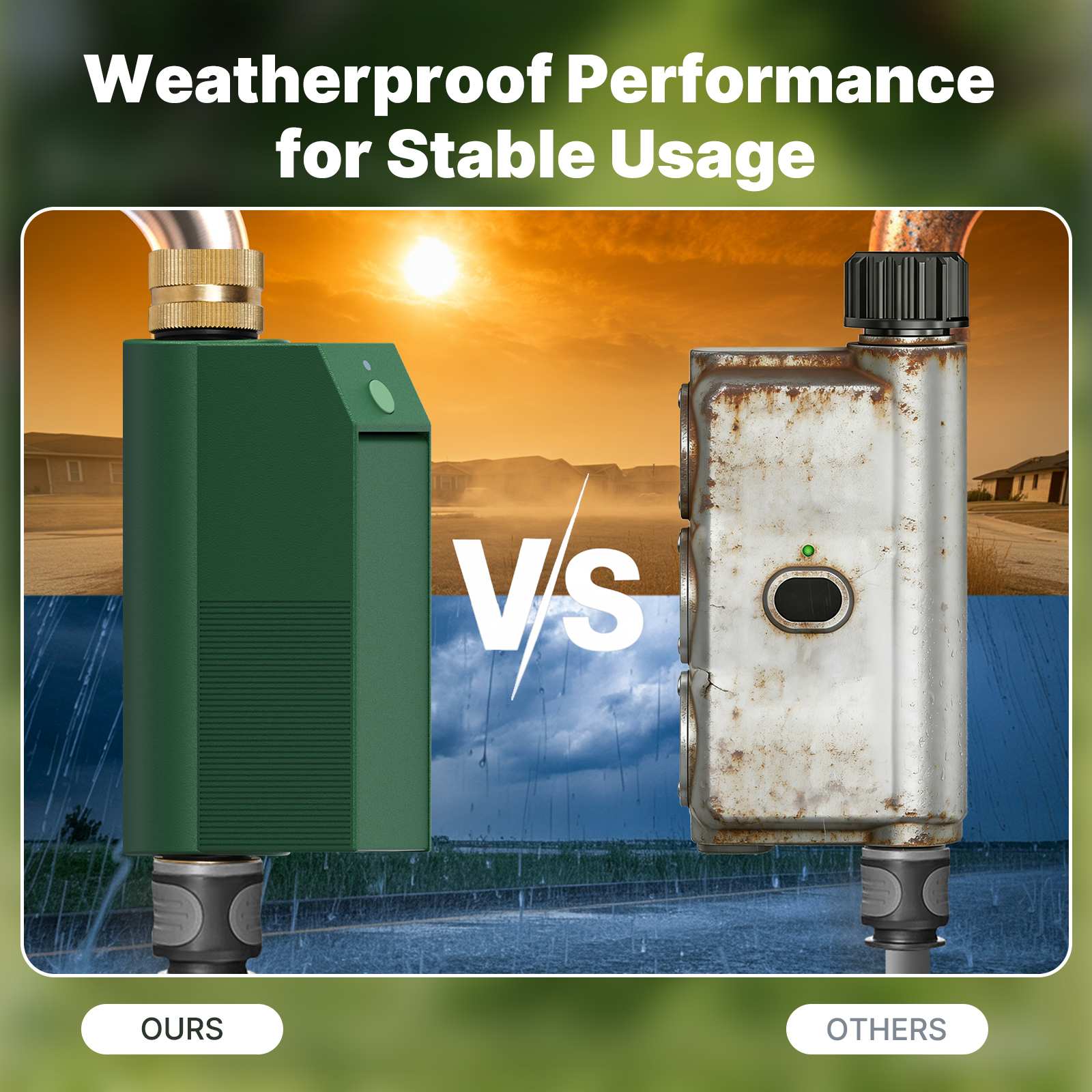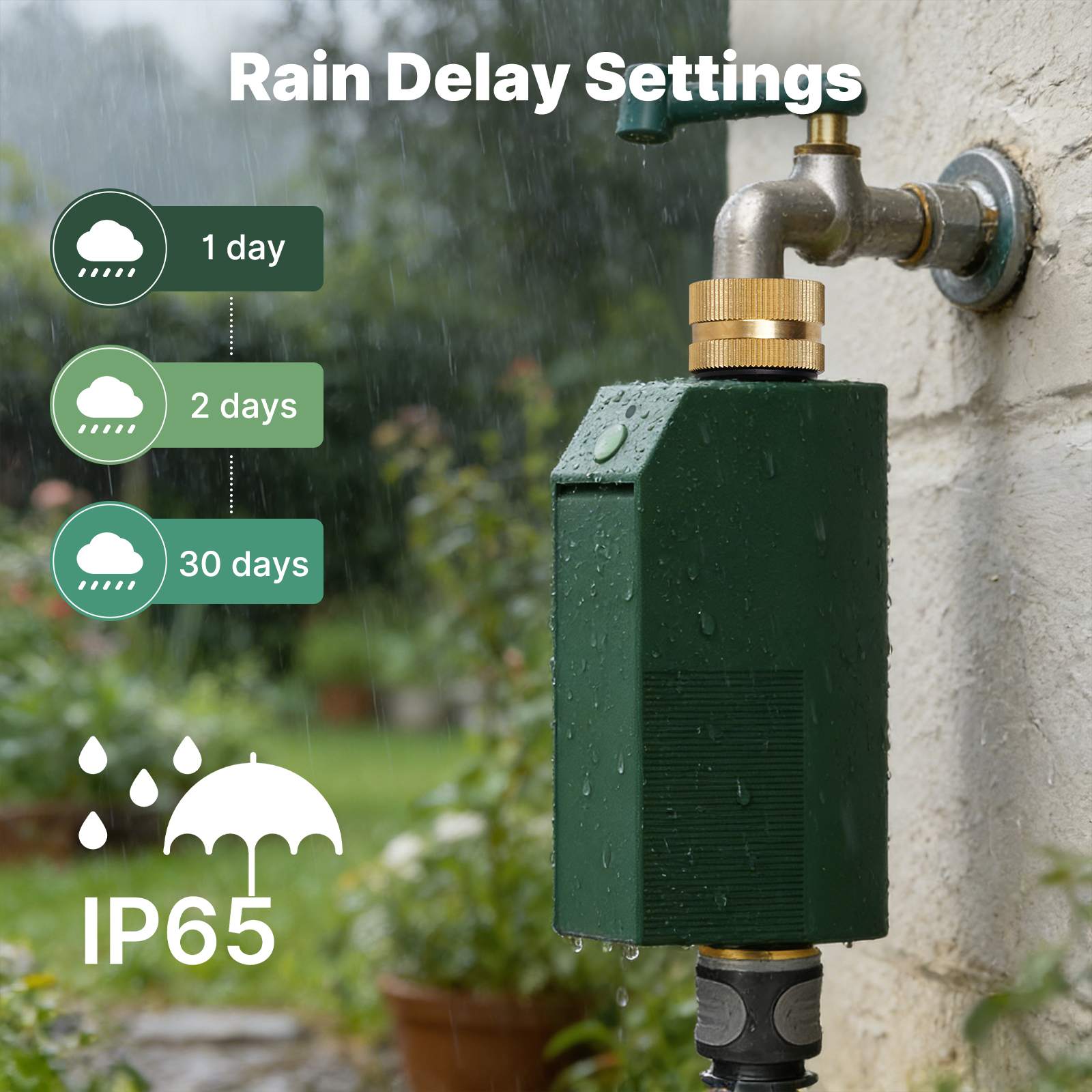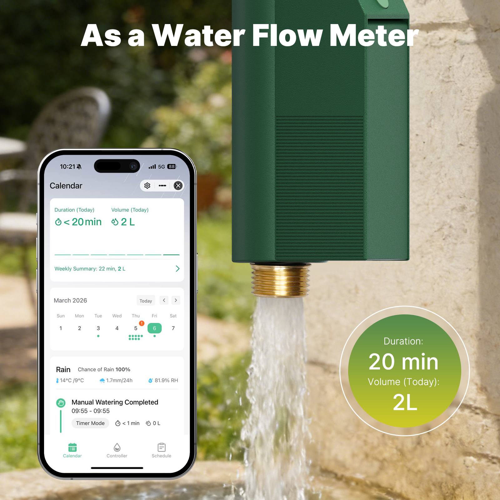 • Built-in Water Flow Meter for Smart Monitoring: Track water usage in real time with the integrated flow meter and view daily/weekly consumption data in the app for smarter irrigation management.
