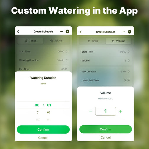 • Flexible Smart Watering Control: Customize watering schedules by time, duration, or volume, and automate irrigation to suit different plants and seasonal needs.