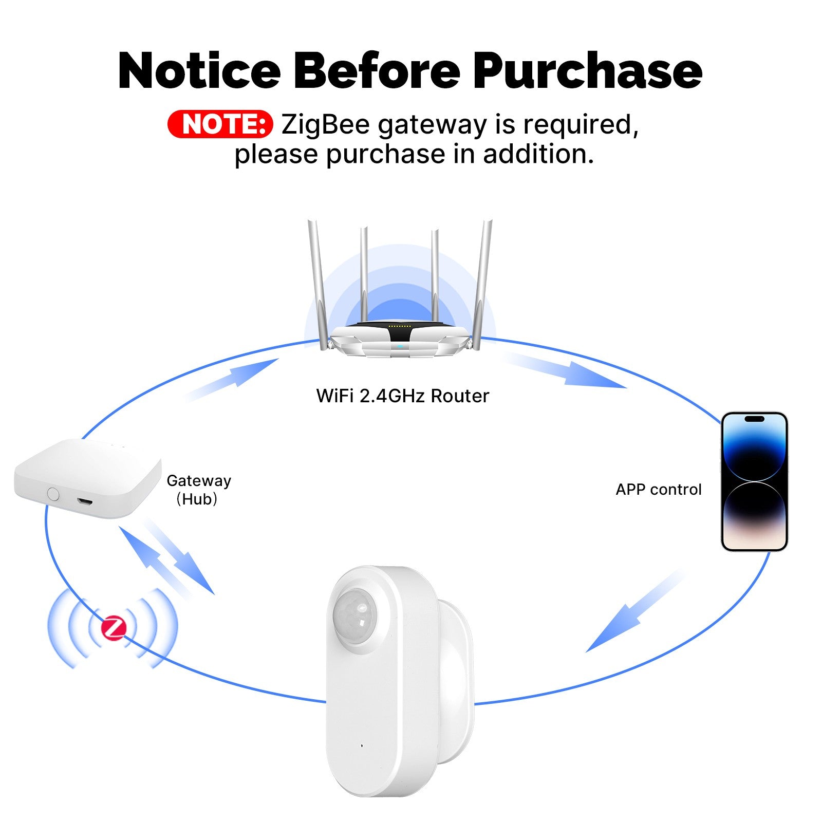 El sensor de presencia humana y movimiento PIR combina tecnologías de detección de ondas milimétricas e infrarrojas para una detección dual, ofreciendo una precisión superior al identificar tanto la presencia humana como el movimiento. Con detección de movimiento de hasta 10 metros y detección de micromovimientos en un radio de 6 metros, este sensor garantiza una amplia cobertura con un ángulo de detección de ≥100°. Admite la vinculación de detección y envía notificaciones instantáneas a su teléfono a través de la aplicación móvil, manteniéndole informado en tiempo real. Su diseño inalámbrico y funcionamiento con batería facilitan su instalación. Para una funcionalidad completa, este sensor requiere una puerta de enlace ZigBee para integrarse perfectamente en su ecosistema de hogar inteligente. Perfecto para aplicaciones de seguridad, automatización o ahorro de energía, el sensor de presencia humana y movimiento PIR mejora la configuración de su hogar inteligente con capacidades de detección avanzadas.