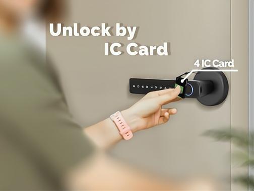 • 5-IN-1 Door Lock:4 Ways to unlock: Fingerprint + password + app + Key(2 included)+IC cards. Door lock fingerprint recognition rate of up to 98%, and supports for 50 groups of fingerprints.