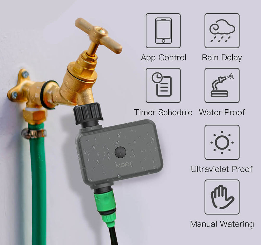 • Muti-Functional with 3 Modes: Auto, manual watering and rain delay featured in MOES App.