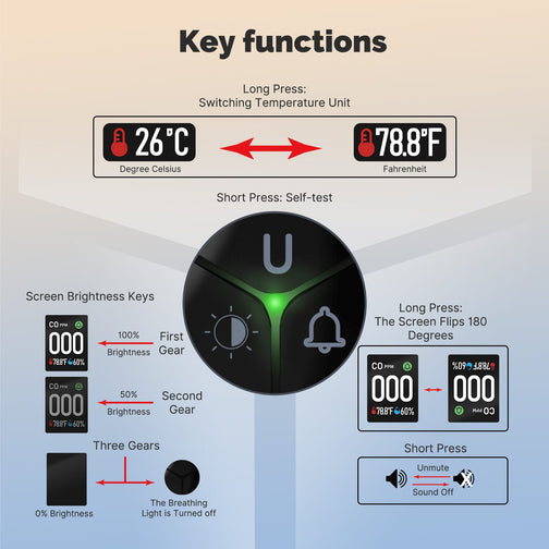 • 3 in 1 Carbon Monoxide Monitor - Detects carbon monoxide (0-999 PPM), temperature (14-122℉), and humidity (0-95% RH)