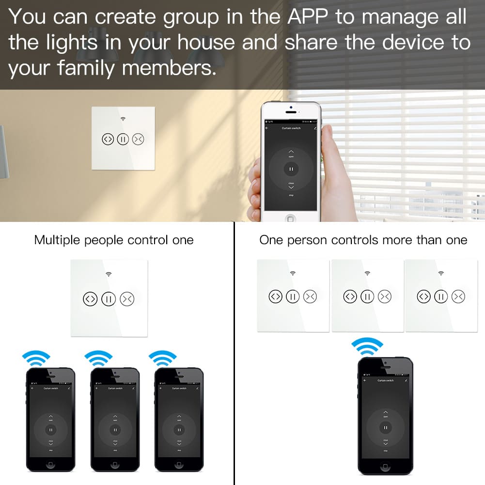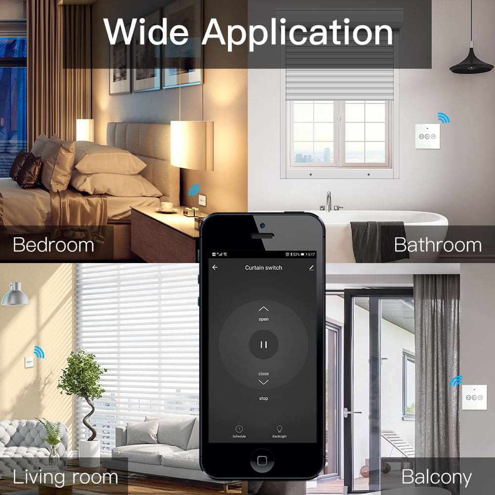 WiFi RF433 Smart Curtain Blinds Roller Shutter Touch Switch Single Pole Neutral Wire Required EU