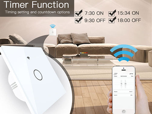 The WiFi RF433 Smart Touch Light Switch provides seamless remote control functionality through the convenient Smart Life Tuya app. With this switch, you can easily manage your lighting from any location using your smartphone or tablet. Featuring 2/3 Way multi-control association and a sturdy tempered glass panel, this switch ensures reliable performance. For added safety, it requires a neutral wire during installation. The MOES app enables you to customize your lighting with timers, schedules, and countdowns. Additionally, this switch is compatible with popular voice assistants such as Alexa and Google Home. Enhance your home automation system with this cutting-edge switch option.