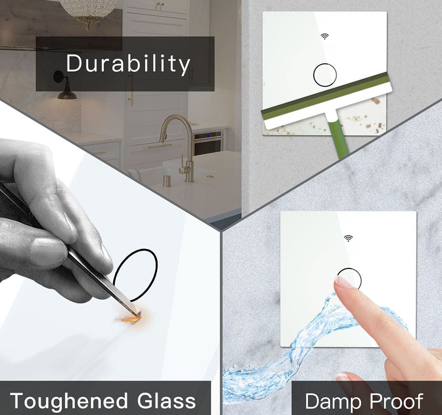 • Anti-Scratch Tempered Glass Panel: The switch features a durable and stylish anti-scratch tempered glass panel, adding a sleek and modern touch to your home decor.