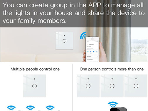• New Pairing Mode: This light switch features a new pairing mode with WiFi+Bluetooth, ensuring a seamless and reliable connection.