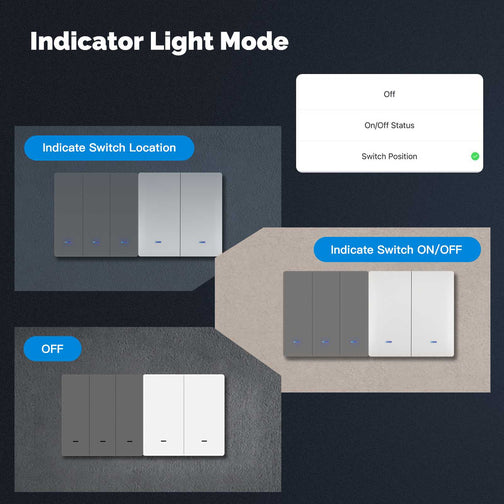 • Indicator light status: Equipped with intuitive indicator lights, users can understand the current switch status at a glance, or allow users to easily operate in the dark.