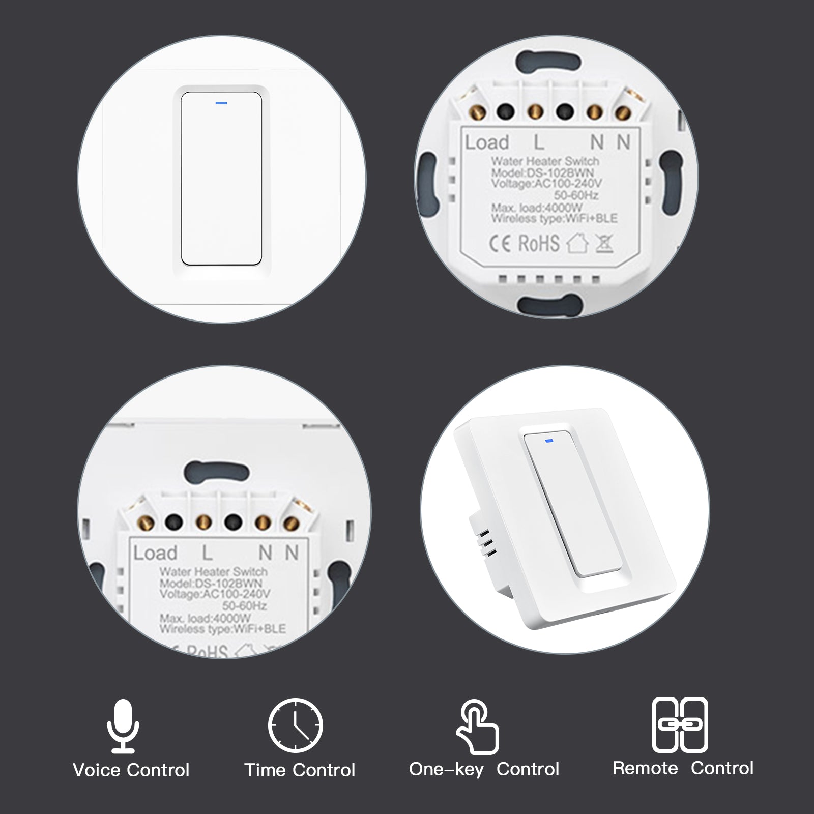 The MOES Smart WiFi Water Heater Boiler Switch is a high-quality and convenient device for controlling the heating of your water. With its extremely soft push-button design, you can easily turn your boiler on or off with excellent precision. The switch features an exquisite craft that matches the appearance of a standard 1 Gang light switch, ensuring consistent decoration style in your smart home