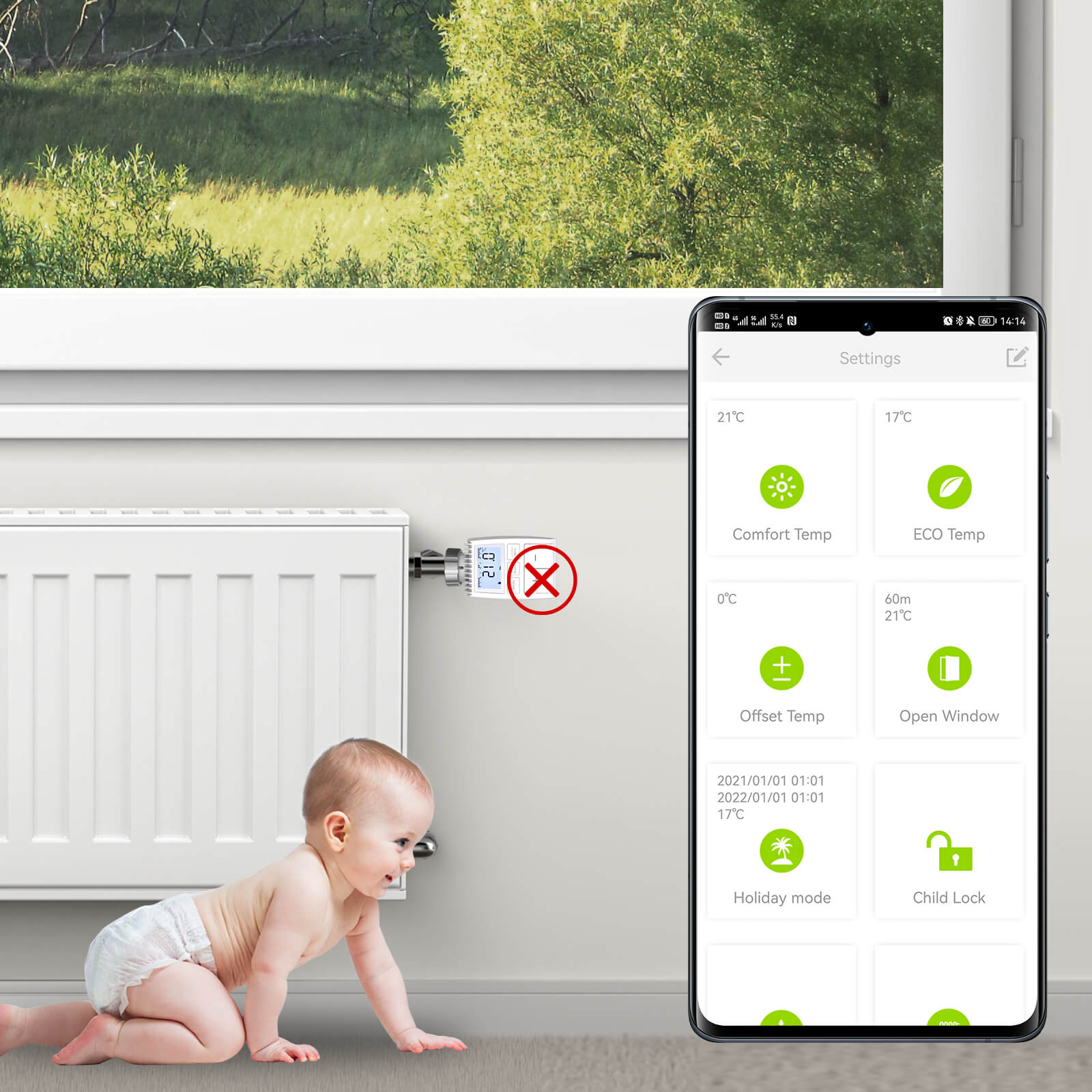 • Programmable Schedule with Weekly Programming Selection: Supports manual set up 5+2, 7 days weekly schedule with 5 periods for option , providing you with the maximum convenience for different situation and setting customized schedule for your house temperature.Holiday mode, automatic mode, and manual mode available for added convenience; Window open detection and offset temperature are both featured for this TRV controller for added convenience.