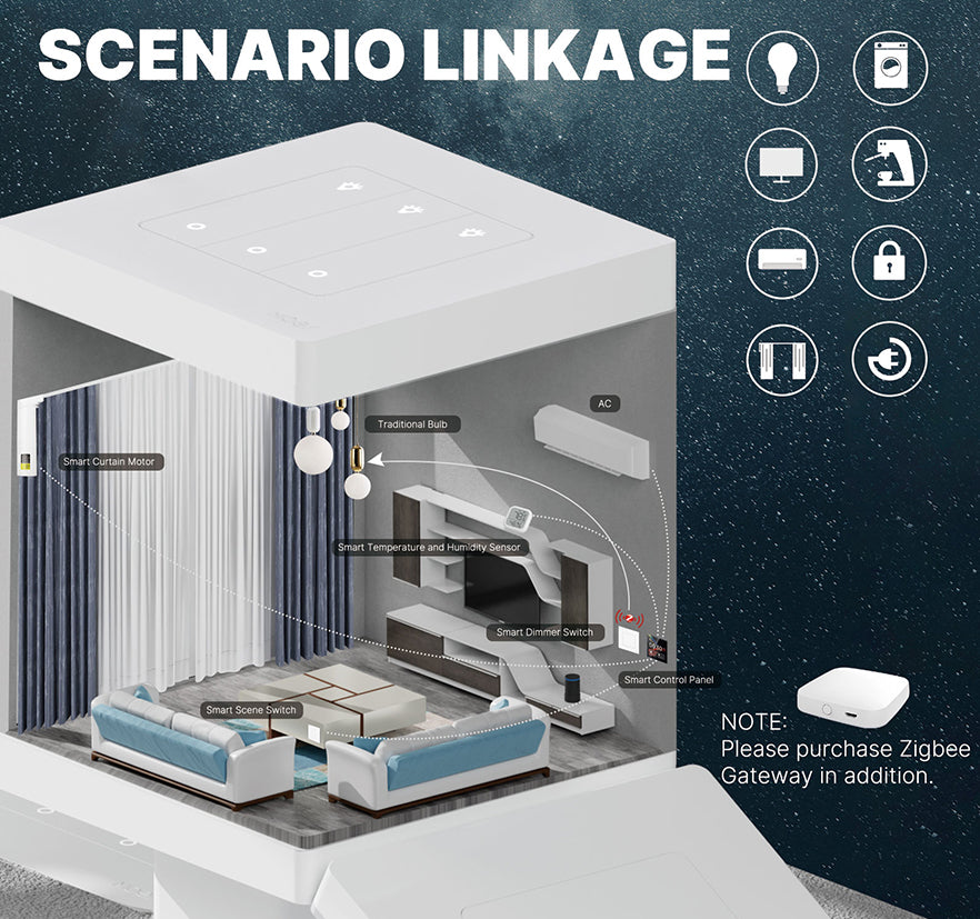 • Smart ZigBee Dimmer Switch: Requires Tuya ZigBee Gateway Hub and neutral wire. Only works with 2.4GHz network. Features upgraded texture and star ring design with indicator light. Provides better home experience.