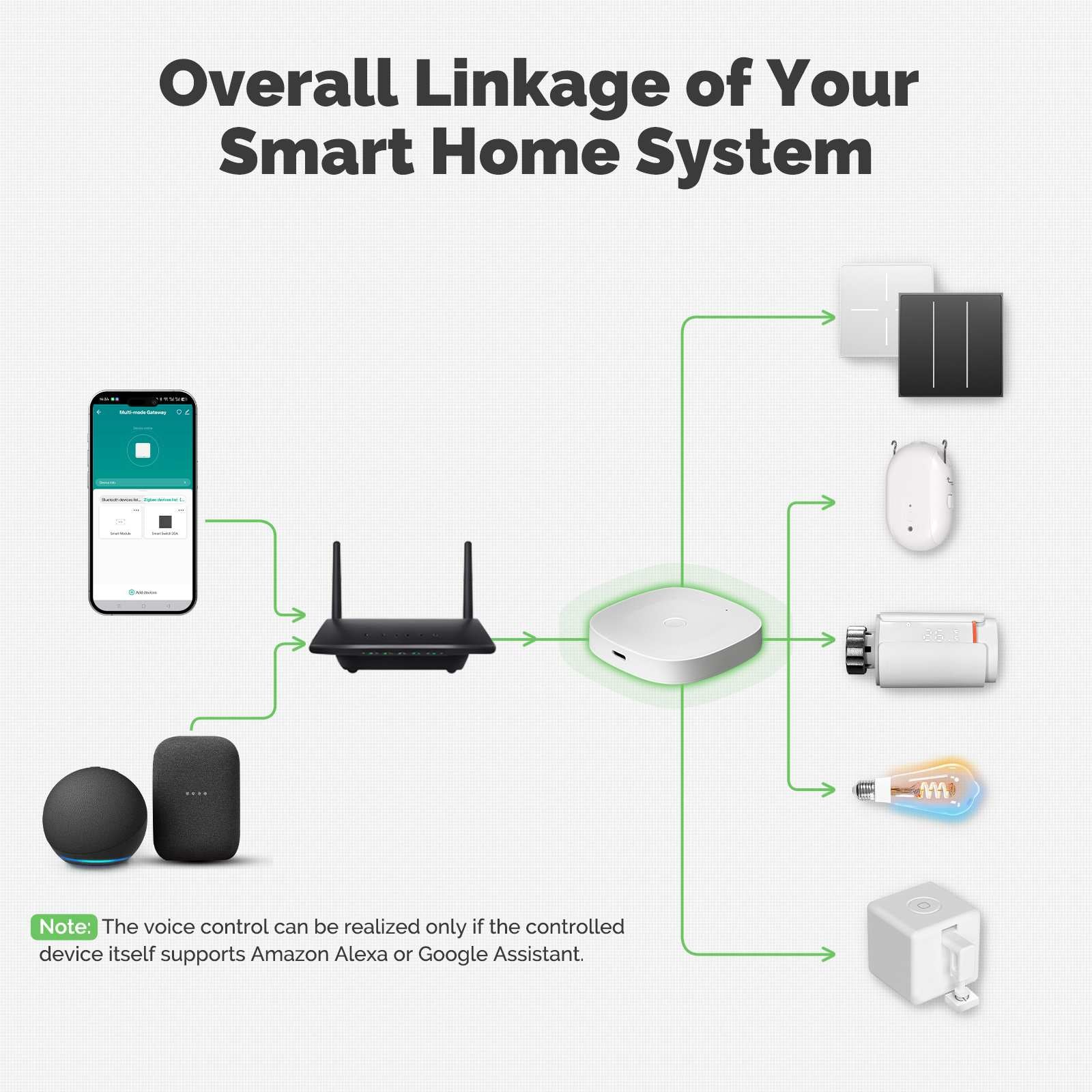 • Multi-Mode Gateway Hub: Acts as the central control unit of your smart home, seamlessly connecting all Bluetooth and ZigBee-compatible devices for unified management and automation.