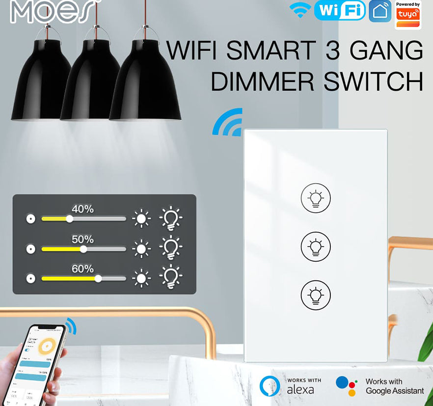 The MOES WiFi Dimmer Switch Smart Light Dimmer is designed to elevate your home lighting experience. With support for 1/2/3 gang configurations, this switch offers versatile control options for your lighting needs.