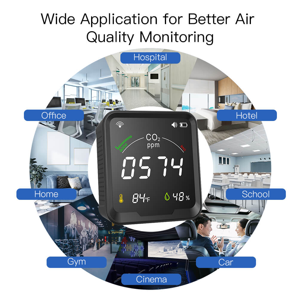 • Compatible with Tuya Smart/MOES APP】Intelligently monitor your house air condition for CO2 concentration, temperature and humidity value on smart phone via Tuya Smart APP when you are not at home,no more worry about sudden accidents. And you can transfer the Temp. valve between ℃ and ℉ easily in APP or directly via the button on the detector.