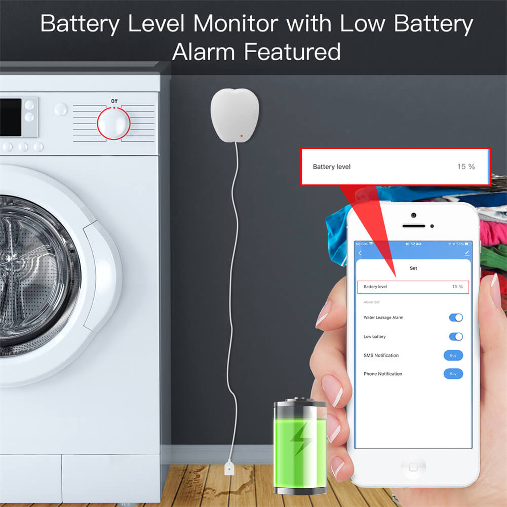 • Alarm set for added convenience: Set the water leakage and low battery alarm for keeping the house high sensitive protection,together with easily replacing a battery when its lifespan is over by monitoring the battery level in APP.