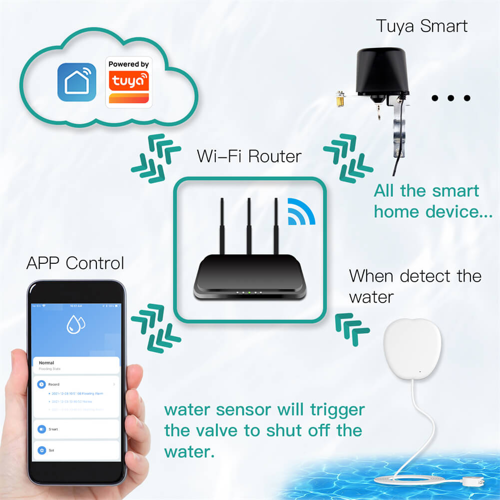 • Wide Applications: Apply the smart flood sensor to different scenes, your garage, bathroom,kitchen and anywhere with water you like,keeping your house away from flood danger with a linkage of the smart flood sensor. (Note: Use the sensor with your smart valve together to intelligently control the irrigation condition,which enables real-time monitor and the valve will close automatically when water leaks.)