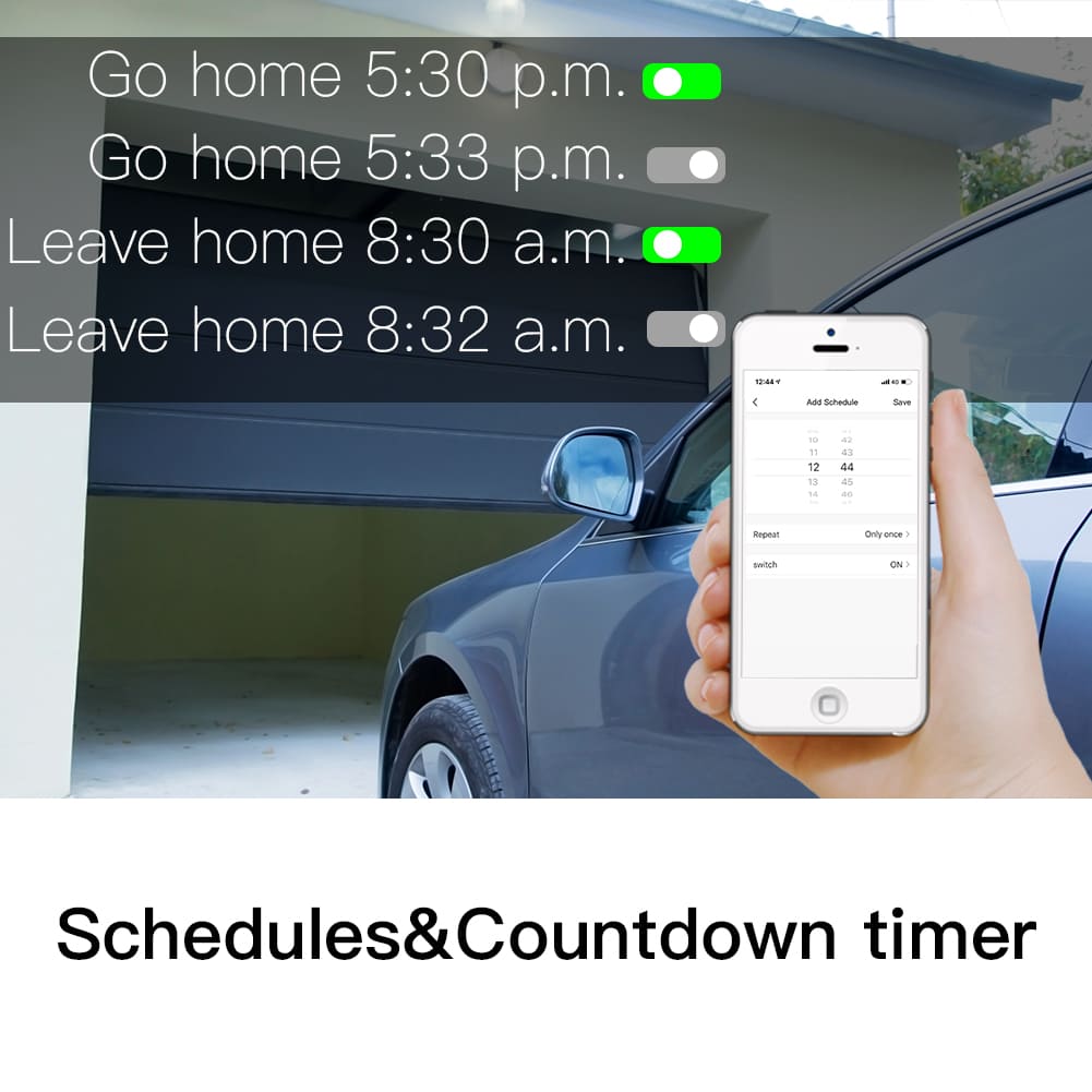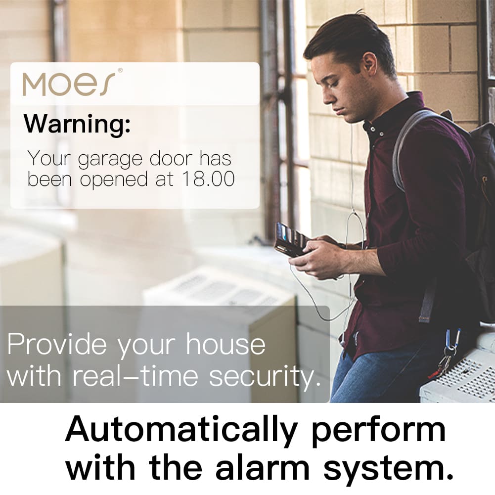 • The versatile MOES app provides features such as door position status via an animated garage door, alerts thru your smart phone, history of turn on/off times, and both countdown & repeat timers,no monthly subscription fees.