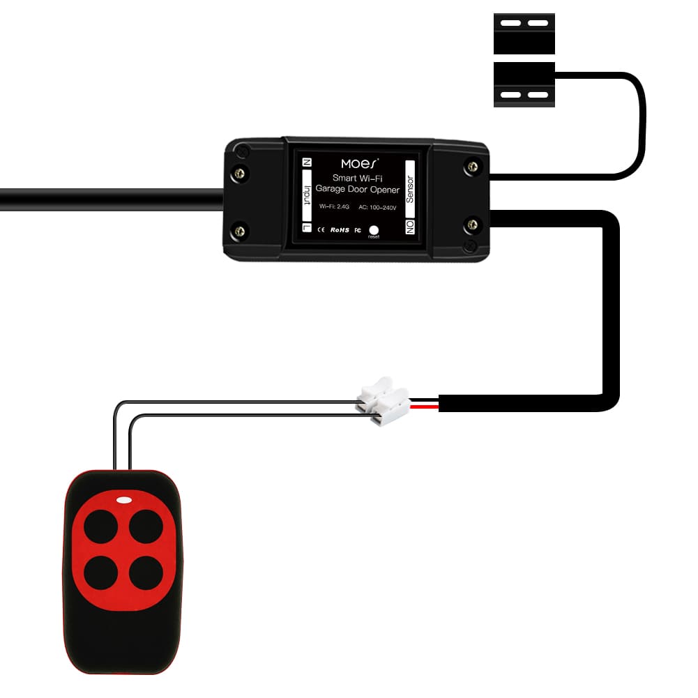 • Wi-fi smart garage door opener controller,MOES app remote monitor your garage door anywhere anytime,compatible with alexa google home no hub required upgrade your garage door to smart control by adding this module to your current opener.