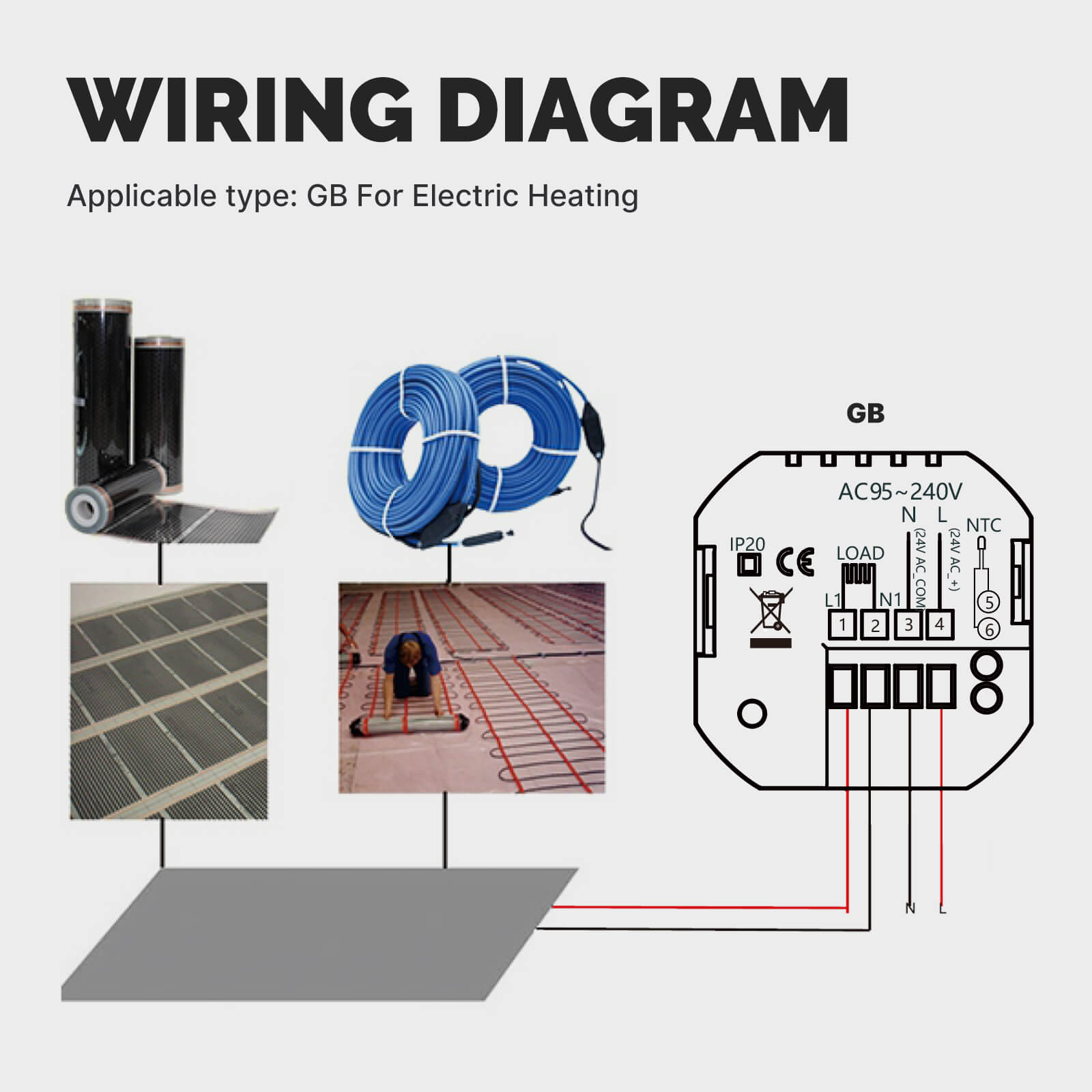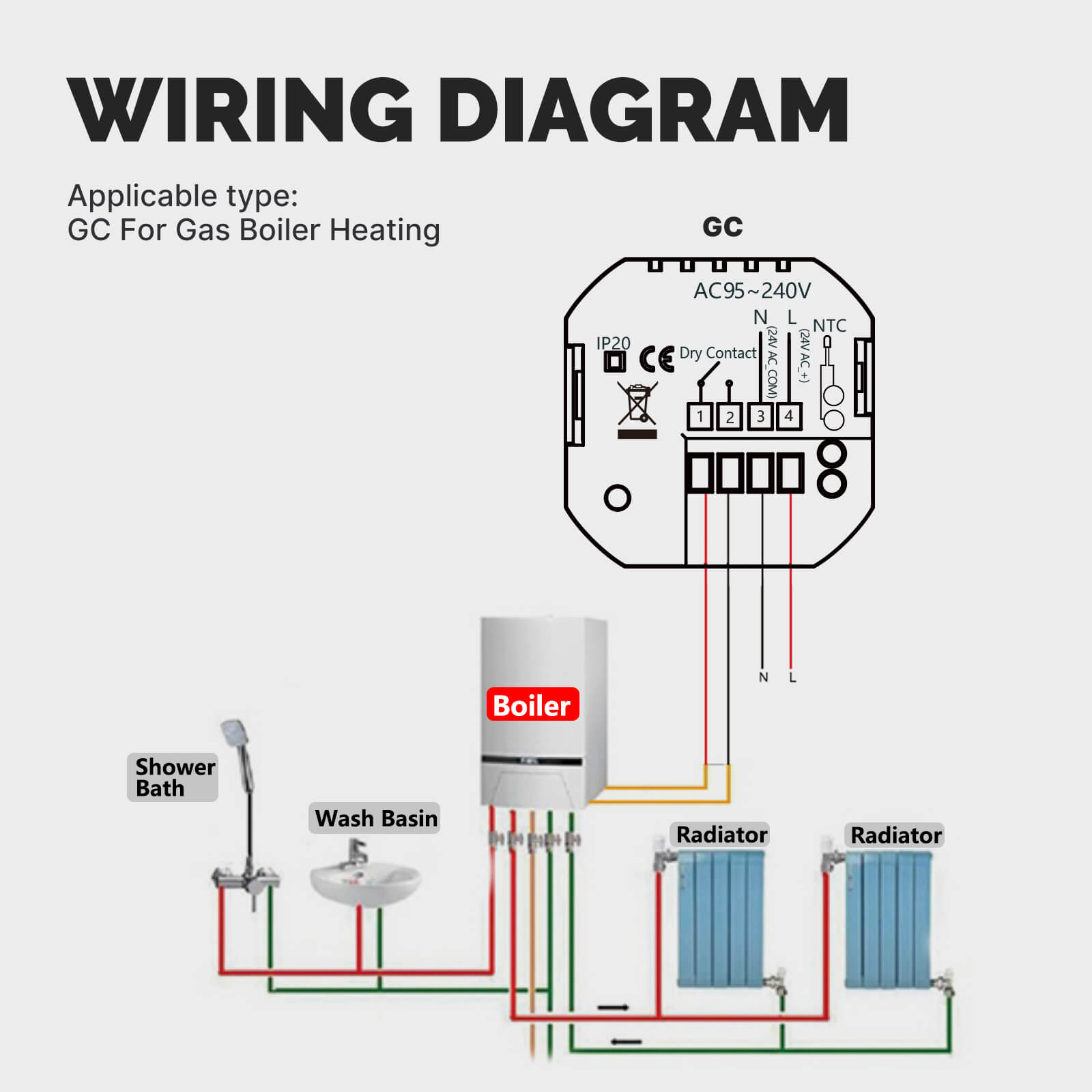 • Wiring Diagram: Check your thermostat version is GA/GB/GC and choose the correct wiring method.
