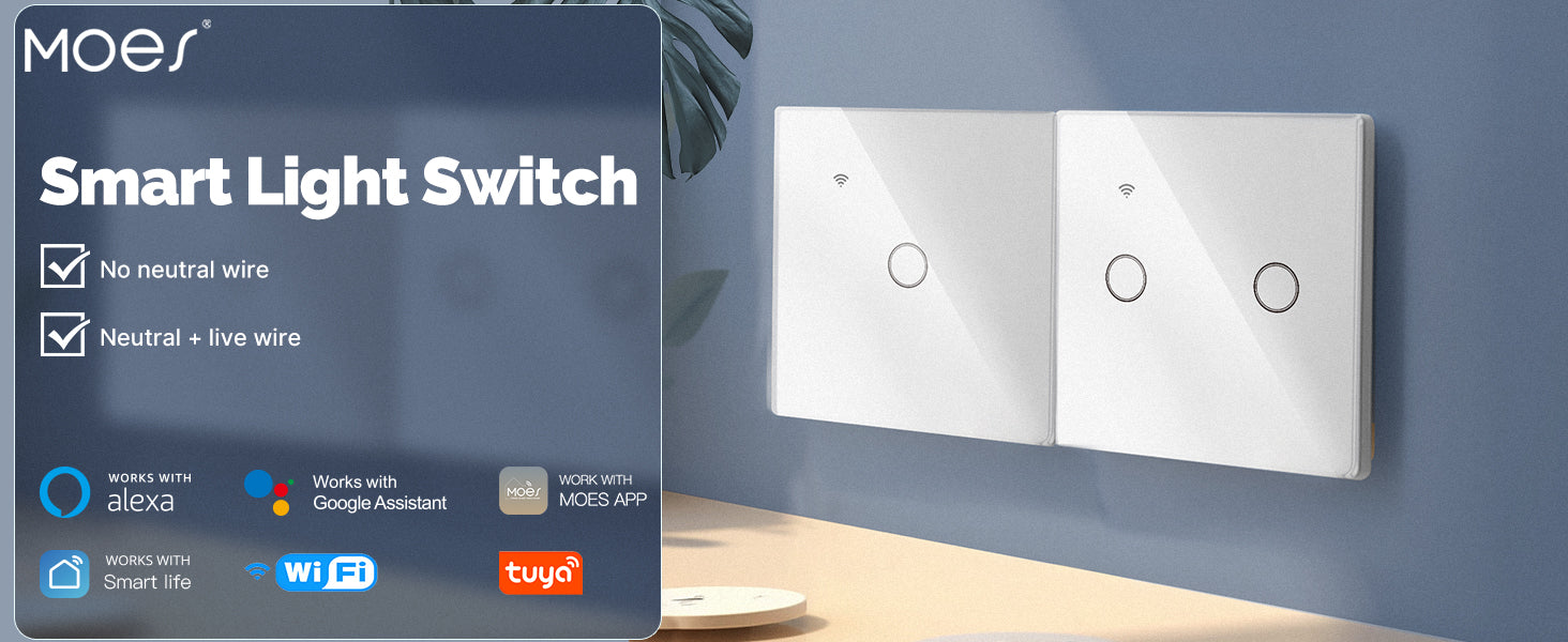 MOES WiFi Smart Light Wall Touch Switch is designed to seamlessly integrate into your modern home, offering both functionality and style. This smart switch supports two wiring methods, allowing you to connect it with or without a neutral wire, making installation flexible and convenient. The switch is crafted with high-strength tempered glass and premium fireproof materials, ensuring durability and safety. Its sleek design complements any décor, while the touch-sensitive surface provides a smooth and responsive experience.