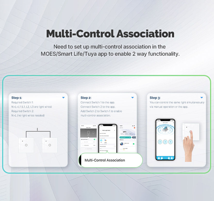 One of the most cost-effective smart switch solutions on the market, it comes with a free capacitor, eliminating the need for additional purchases. With the ability to connect to the MOES/Tuya Smart APP, you can effortlessly control your lighting from anywhere using your smartphone. Whether you’re at home or away, you can manage your lights with a simple tap or voice command. Enhance your home automation with this reliable and stylish WiFi Smart Light Wall Touch Switch.