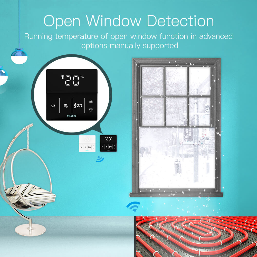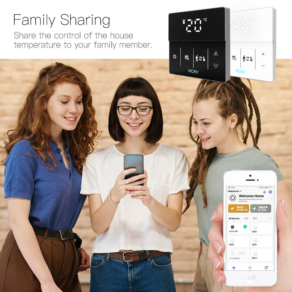 • Family Sharing and Open Window Detection: Device share to your family members to control your house temperature via smart phone App together. All can enjoy the advanced comfort of the temperature; Also with running temperature of open window function in advanced options.