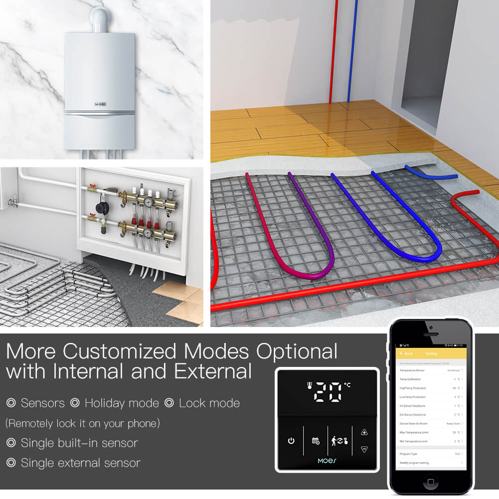 • WiFi Smart Touch Screen Thermostat with logo color adjustable: The wifi gas boiler&water electric floor heating thermostat is designed with touch screen and ultra-thin body for wall mounted.Simply connect the thermostat to the gas boiler or underfloor water/electric heating system for normal use with power off memory.Logo RGB color changeable with on/off manually featured for this new version.(Note: The thermostat is designed for gas boiler and underfloor water /electric heating system,please confirm your device before placing an order.) There are two types of the thermostat: One is for gas boiler and underfloor water heating system as GC,and the other is for underfloor electric heating system as GB.)
