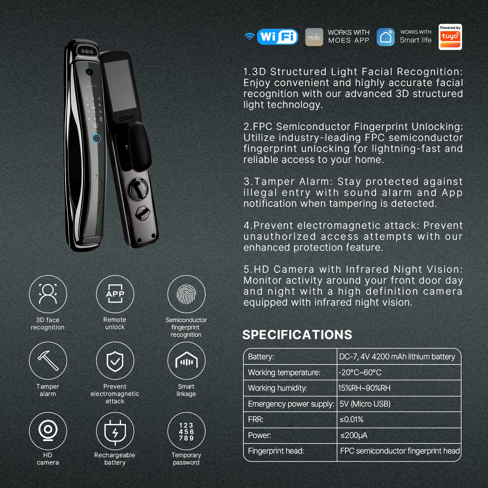 • FPC Semiconductor Fingerprint Unlocking: Utilize industry-leading FPC semiconductor fingerprint unlocking for lightning-fast and reliable access to your home.