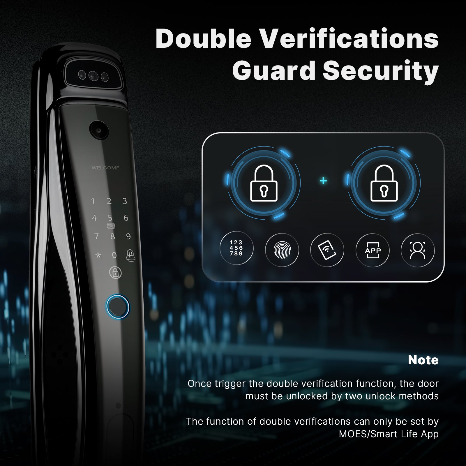 The function of double verifications can only be set by MOES/Smart Life App.