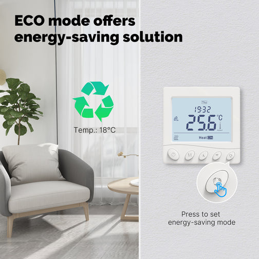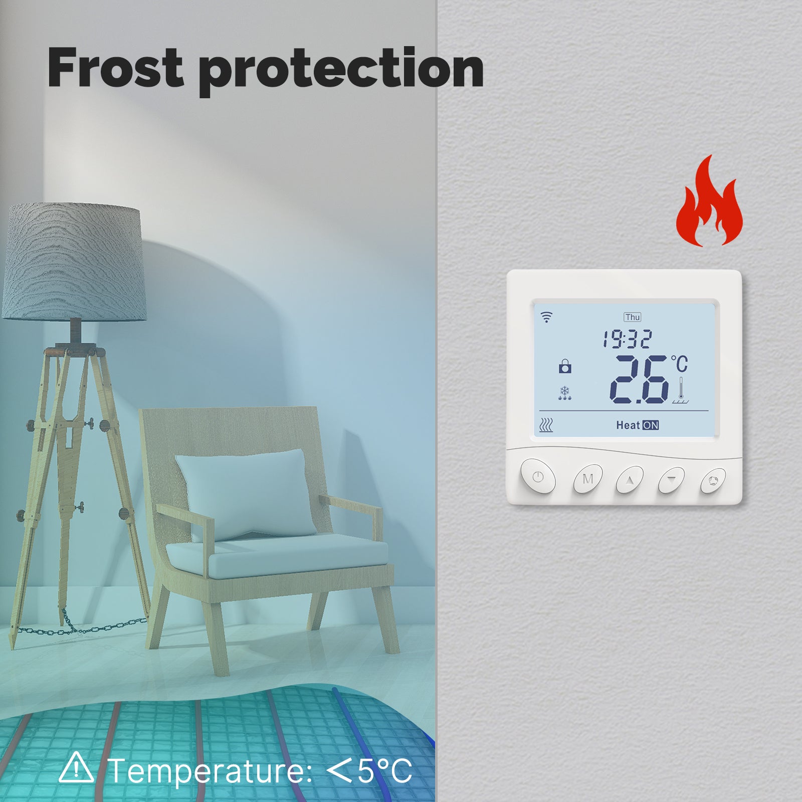 • Offers full-auto or manual set up:control your device manually or connect to WiFi and adjust heating schedules and temperature via smartphone app, easily adjusting or controlling the temperature of your house.