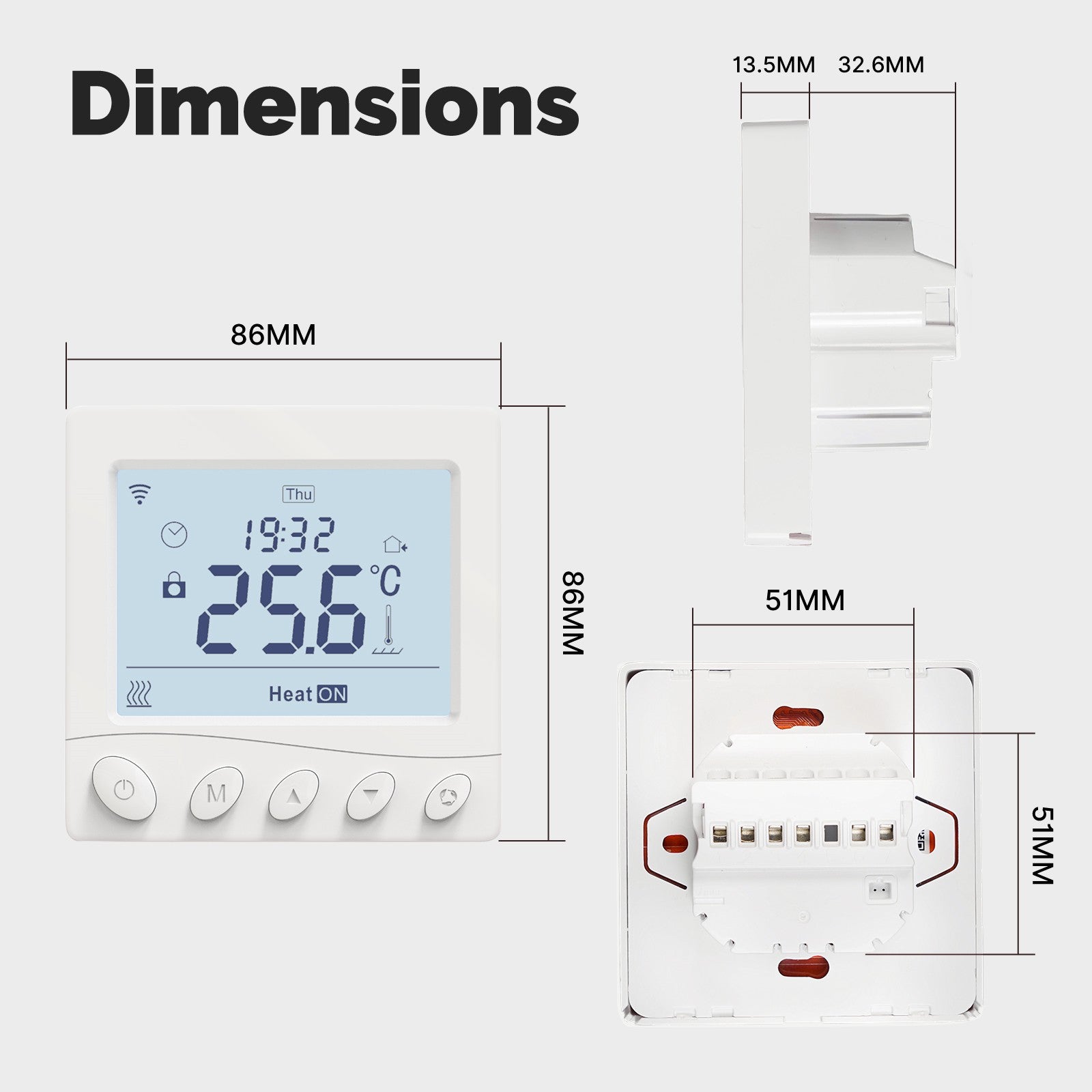 • Versatile Heating Solutions: Our WiFi Thermostat Room Temperature Controller comes in three models to cater to different heating needs, whether it’s for water floor heating, electric floor heating, or water/gas boiler heating.
