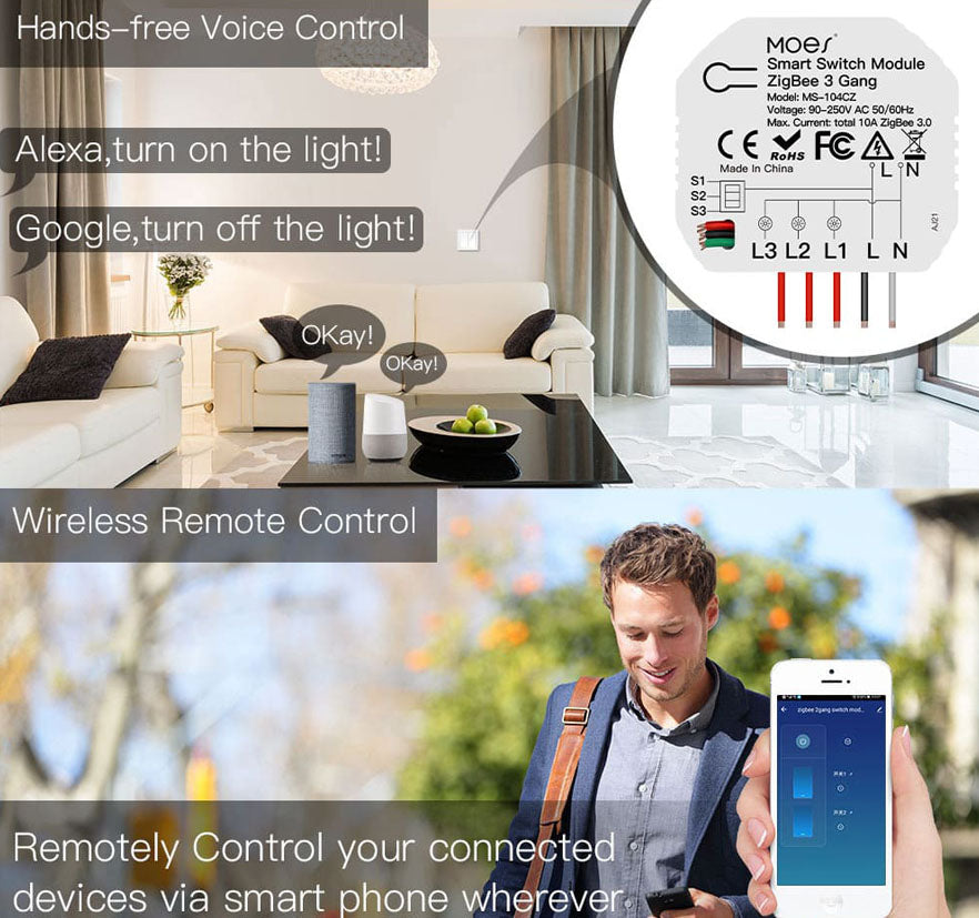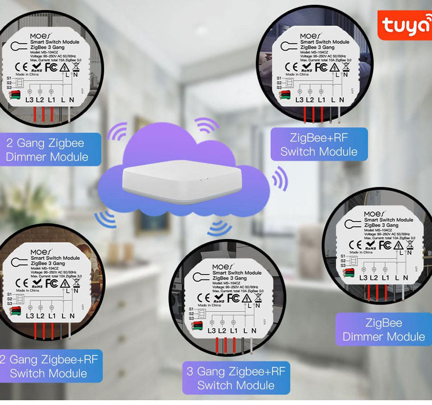 MOES Tuya Zigebee Module, DIY 3 Gang Smart Switch, 1 2 Way Circuit Breaker Interruptor