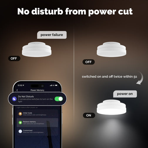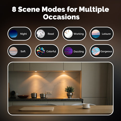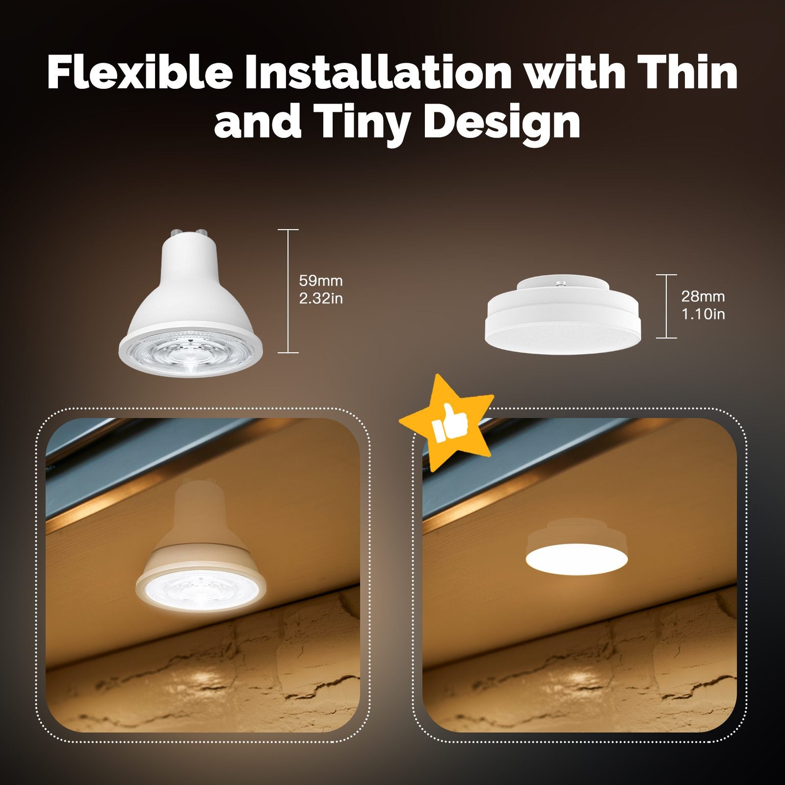 Adjust brightness from 1% to 100%, sync lights to your favorite music, and enjoy the flexibility of a slim, compact GX53 design — perfect for under-cabinet lights, ceiling fixtures, and more.